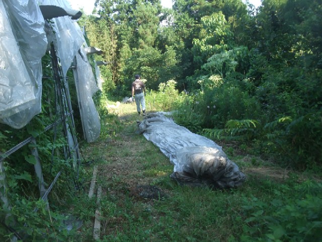 ハウスのビニールはなんとかはずしたのだけど、トンネルのポリを